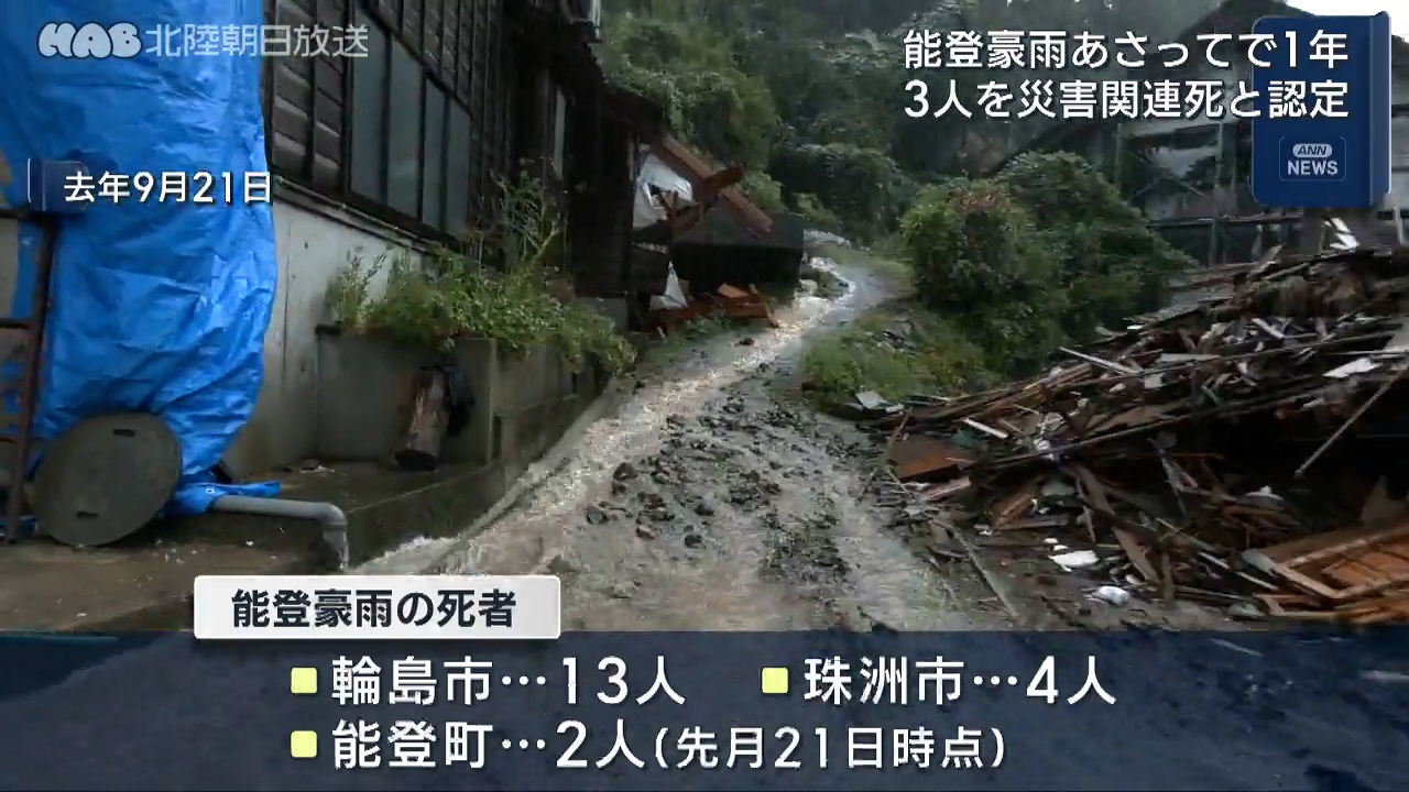 能登豪雨からあさってで1年 3人を災害関連死と認定