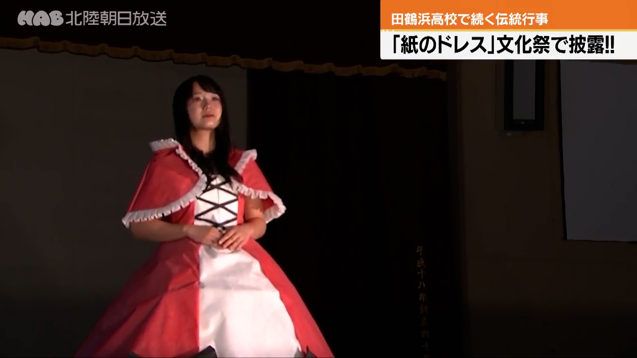 石川県七尾市の田鶴浜高校で文化祭があり、紙で作ったドレスを披露する恒例のステージが注目を集めました。