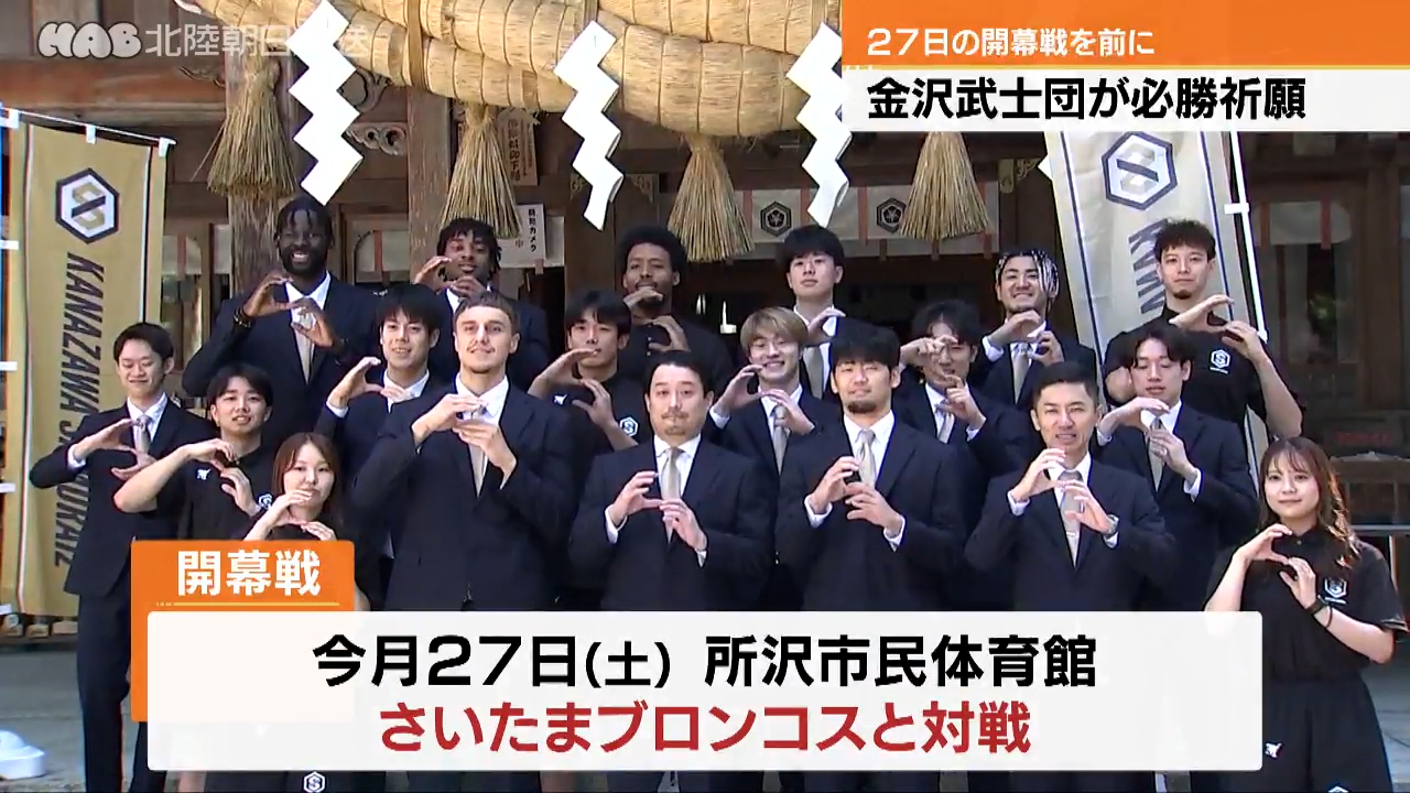 9月27日に開幕戦を迎えるバスケットボールB3リーグの金沢武士団が22日に白山ひめ神社で必勝祈願を行...