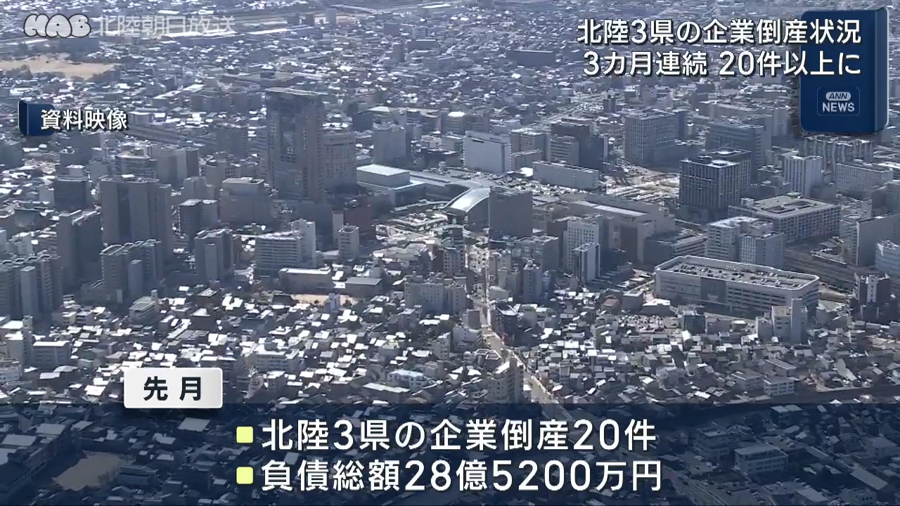 北陸の企業倒産 約6年ぶり3カ月連続20件以上に