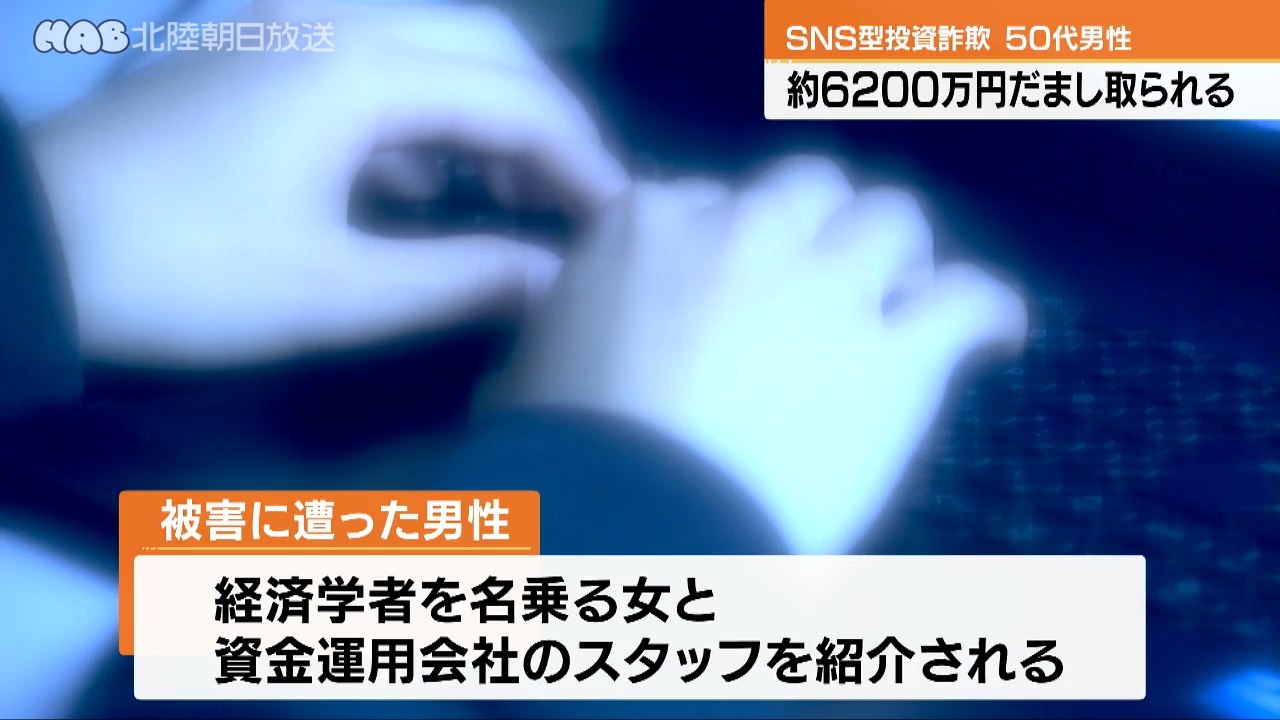能美市に住む50代の男性がSNS型の投資詐欺で現金およそ6200万円をだまし取られました。