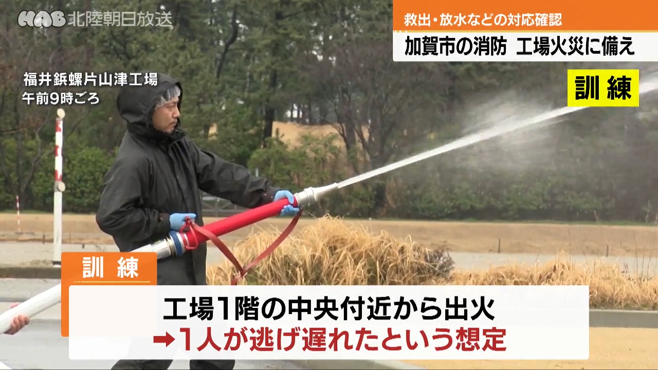 20日から1週間、春の火災予防運動が行われます。それを前に加賀市消防本部が工場火災への対応を確認しま...