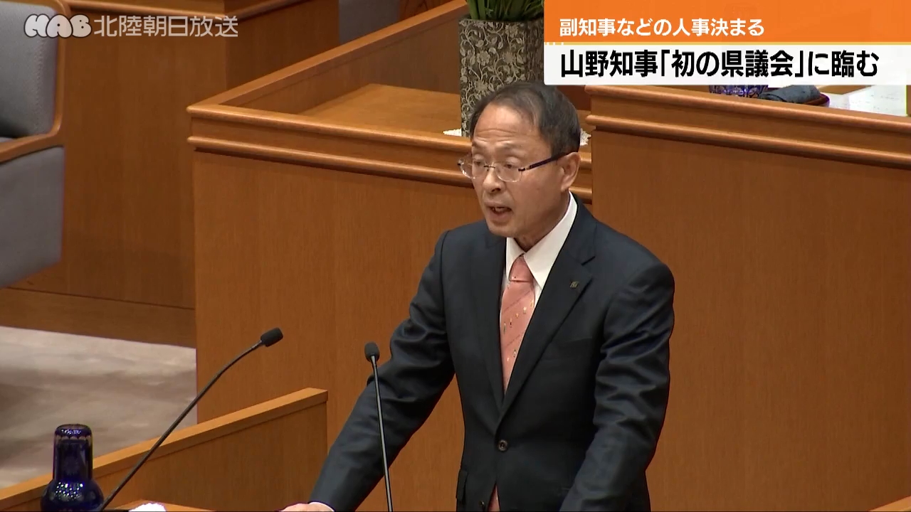 石川県の山野之義知事は、就任後初めてとなる県議会に臨みました。副知事などの交代人事を提案する臨時議会...