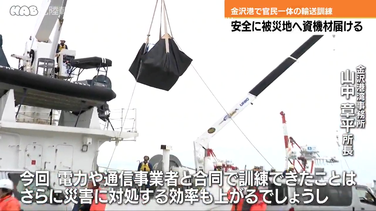 能登半島地震を教訓に、金沢港では被災地に安全に資機材を輸送する訓練が行われました。訓練には県や金沢海...