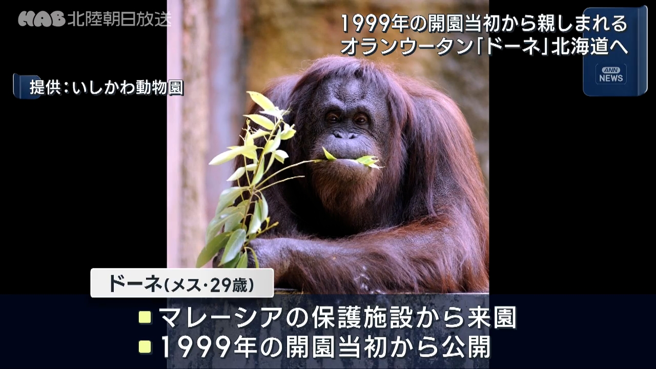いしかわ動物園のオランウータン「ドーネ」が北海道へ