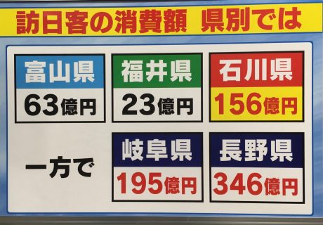 日本銀行金沢支店のまとめによると、北陸3県合わせた2018年の訪日外国人の消費額は242億円で、内訳は石川156億、富山63億、福井23億となっています。石川が全体の64%を占めていますが、周辺の県と比べると、岐阜は195億、長野は346億と石川の2倍以上となっています。石川と長野の違いは何か!?実は1人あたりの宿泊数が違いました。石川の1.8泊に対し、長野は2.7泊となっています。これは長野が「ウインタースポーツなど体験・宿泊型の観光が誘客コンテンツ」になっているからだと思われます。日銀金沢支店によると「北陸のインバウンド客数の伸びは鈍化している」ということで、さらに新型コロナウイルスの影響もあり、今後の経済への影響が懸念されます。